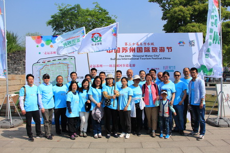 4月22日,集團(tuán)20多名員工參與了蘇州市旅游局組織的“走運(yùn)蘇州——環(huán)古城河步道走游活動”。走游活動的路線是從相門和古胥門兩個方向同時開始的,全程7公里,途經(jīng)桂花公園、盤門南廣場等地,共有600多人參加了這次活動,并將低碳出行、文明旅游、綠色環(huán)保等理念融入其中。統(tǒng)一的藍(lán)色體恤匯成 “藍(lán)色大隊(duì)”,震撼亮相,場面十分壯觀。集團(tuán)員工歷時80分鐘左右全部到達(dá)終點(diǎn)。