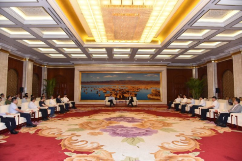 (圖為寧夏回族自治區(qū)黨委書記石泰峰會見江蘇企業(yè)寧夏考察團)。